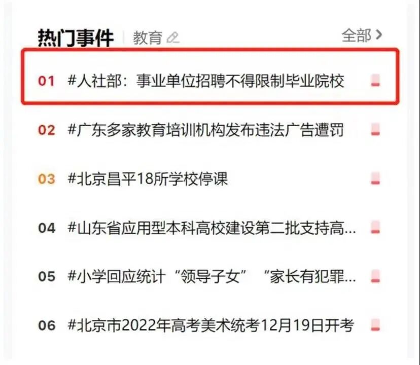 近日,人力资源社会保障部印发《关于职业院校毕业生参加事业单位公开招聘有关问题的通知》,要求事业单位公开招聘要树立正确的选人用人理念,破除唯名校、唯学历的用人导向,切实维护、保障职业院校(含技工院校)毕业生参加事业单位公开招聘的合法权益和平等竞争机会。