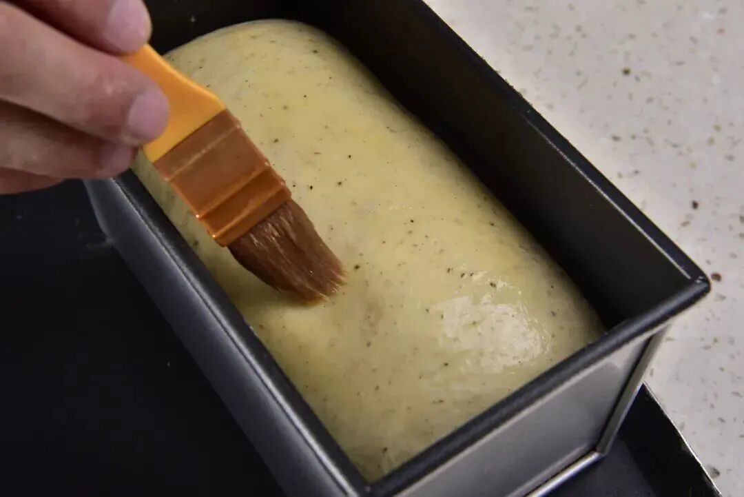 方形吐司在最终发酵的时候通常只需要醒至模具的7、8分满就可以入炉去烘焙了。