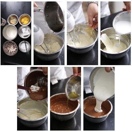 4.将“步骤3”倒入黑巧克力中,静置2~3分钟。