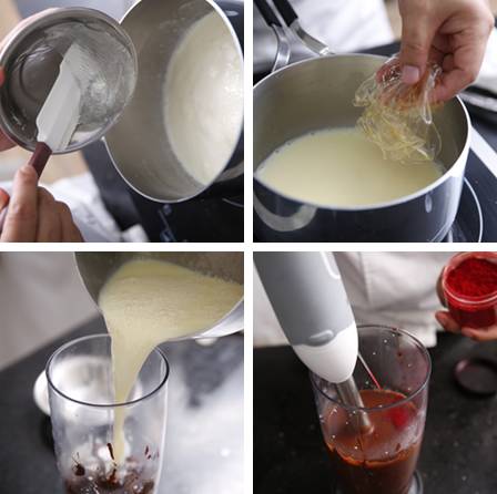 5.加入红色素用手持料理棒打匀,静置到消泡使用。