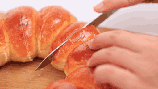 ● 长锯齿刀通常还用来切面包,尤其是将土司切片,它也是能手哦。需要注意的是,土司刚出炉的时候非常柔软,一般不易切块,保存几个小时以后再切块,会切得更加整齐。
