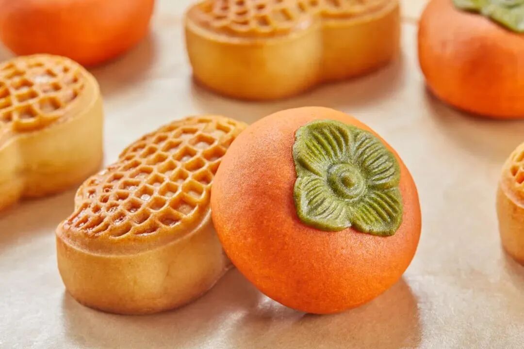 9/15将面团取出25克,加入抹茶粉揉匀,调制成叶子的颜色,将剩余的面团加入金黄芝士粉揉匀,调制成柿子的颜色,盖保鲜膜松弛1个小时。