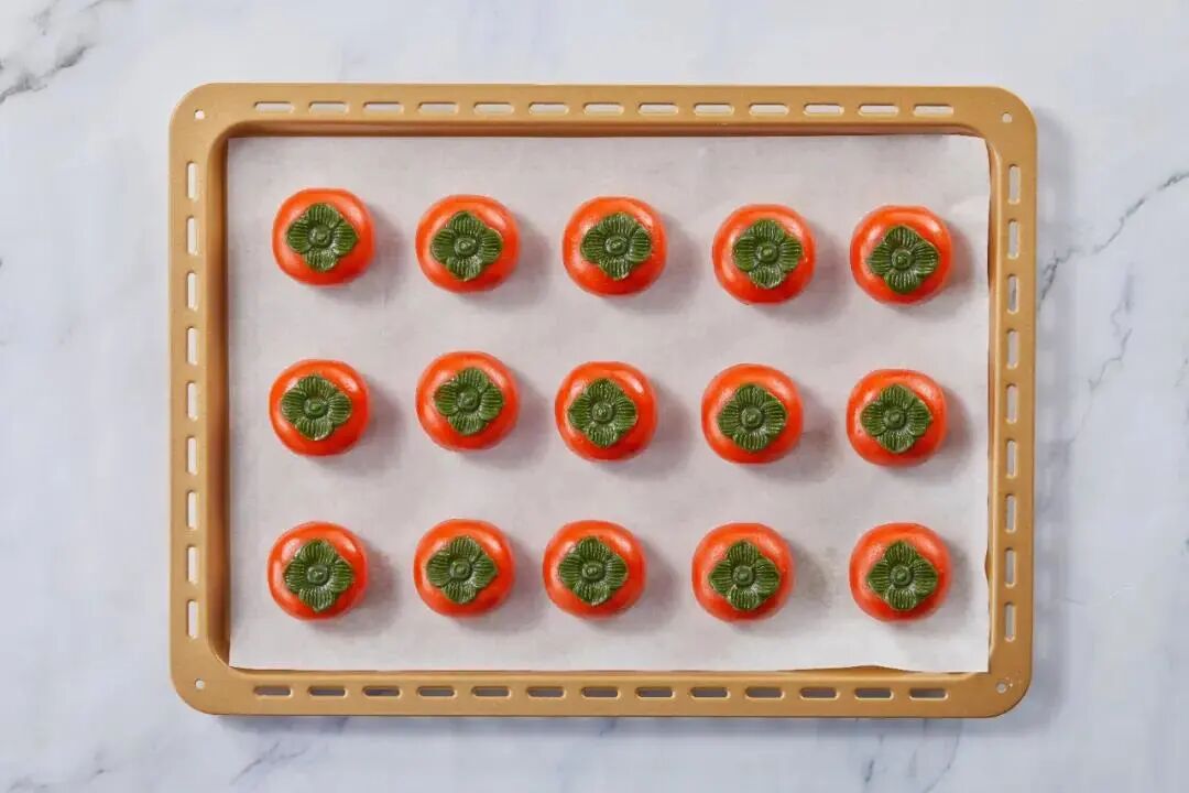 15/15 将烤盘放入预热好的烤箱,上火180下火170度先烤8分钟后,转上火165下火155度烘烤10分钟即可。(为防止叶子变色,可在中途盖上锡纸。)