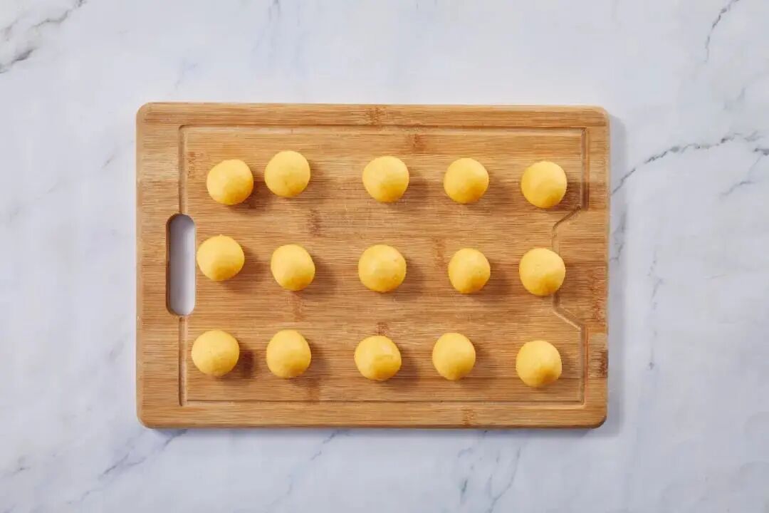 10/15把奶黄馅分成25克一个的小剂子,揉圆备用。