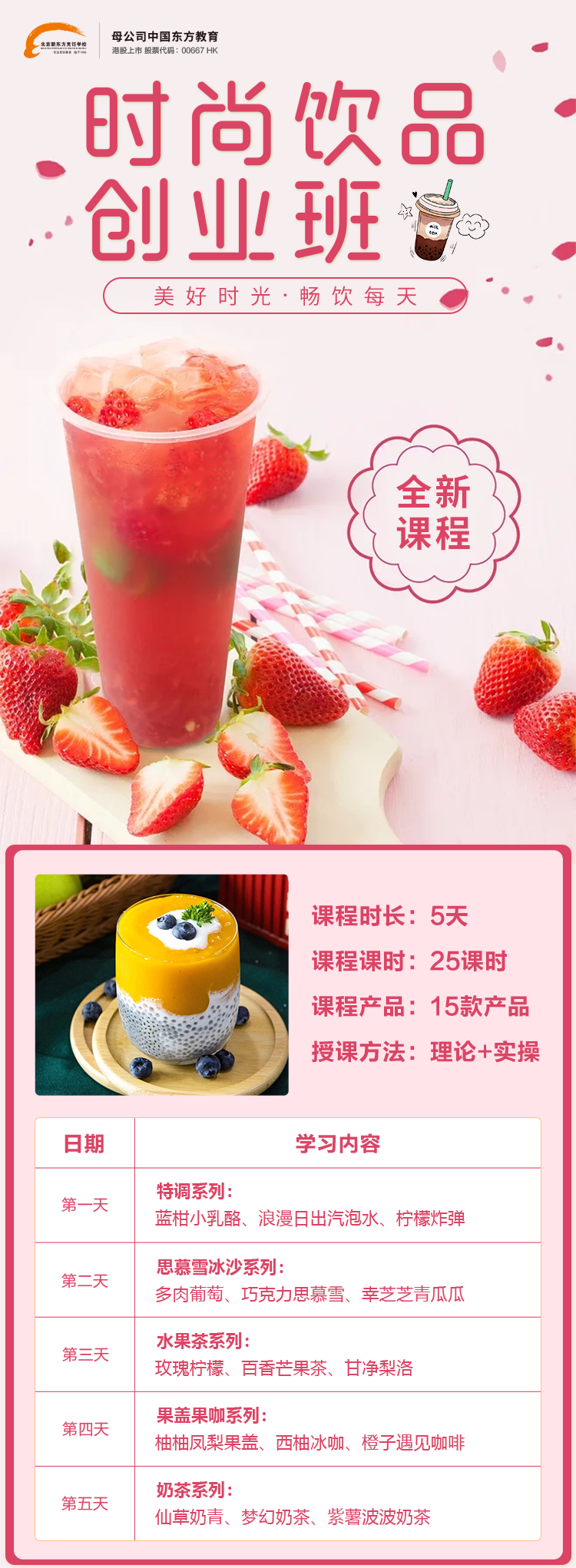 该课程根据市场流行趋势,为你提供时下流行的饮品教学以及对原材料的分析、理解。让你的学习收获变成一个持续性的创造过程。只有了掌握饮品制作的创新能力,才不会被这个不断更新换代的市场淘汰。
