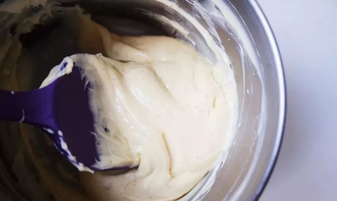 离火之后,为了避免锅的余温持续加热黏锅,要立即将奶酱倒入到准备好的容器里,然后用保鲜膜直接接触奶酱紧紧包裹住,然后立即放入急冻中降温,之后再冷藏。