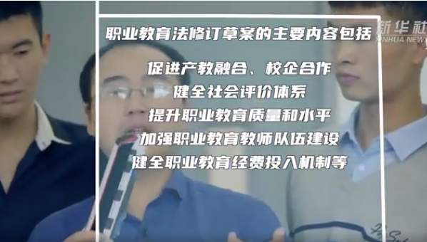 草案对产教融合和校企合作,支持社会力量举办职业学校,促进职业教育与普通教育学业成果融通互认等作了规定。