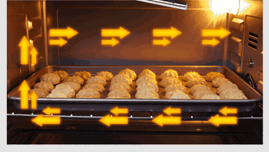 自然条件下的对流存在于每种烤箱中,但是风炉中有强制对流的装置,这种炉子会帮助能量较高的气体或者液体分子向能量低的部位快速转移与传递,使产品快速熟化。![]()