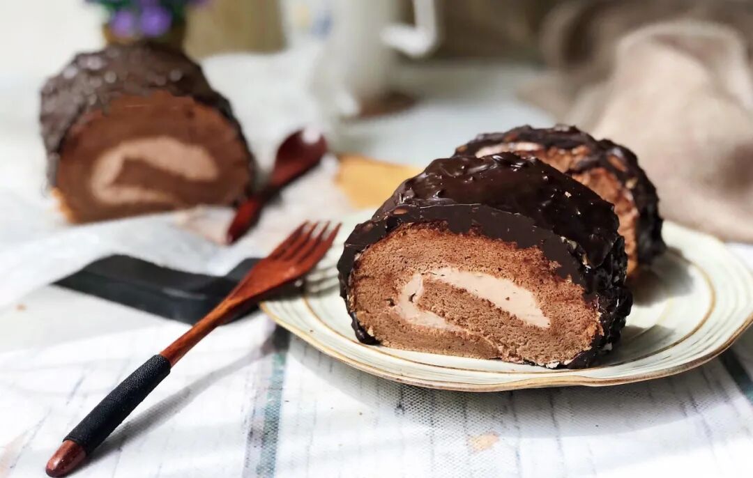 切蛋糕时还有一个很重要的问题,就是粘刀,这往往使我们切出的蛋糕惨不忍睹。解决这个问题,就需要把刀在火上烤一会,等刀烤热之后再切,就不会再出现粘刀的问题。这个方法可以用来切蛋糕卷,对于其他蛋糕也同样适合哦!在卷蛋糕卷的时候,我们用到的纸张尽量要选薄而坚韧的材质,这样会更好的去定型,也更有利于我们去操作。如果要使用蛋糕片的底部来作为表面,就要注意蛋糕卷底部完美。使用油纸很容易因为湿气聚集而起皱,所以最好使用不粘烤盘或在烤盘底部垫一张油布,这样才能得到平整的底面。![]()