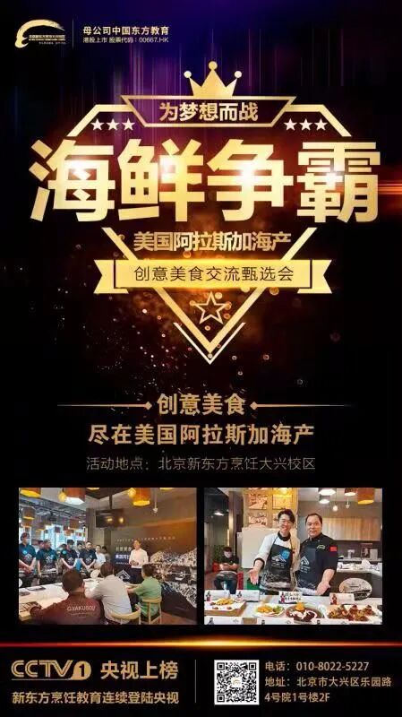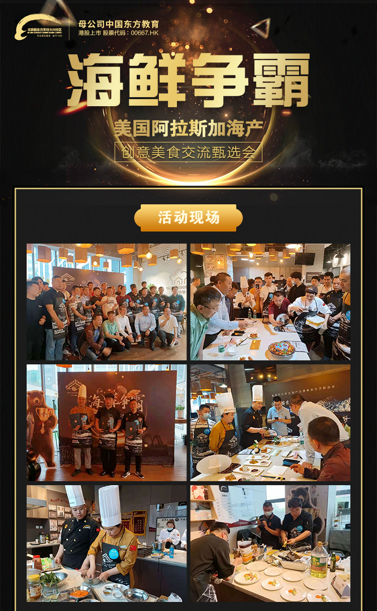 阿拉斯加海产创意美食交流甄选会,是在北京新东方烹饪大兴校区举办的行业技能切磋盛会,旨在为广大的餐饮爱好者和从业人员提供一个交流分享、实践演练与施展才华的平台;和行业菁英名师面对面交流学习,同台竞技,互相进步的平台。