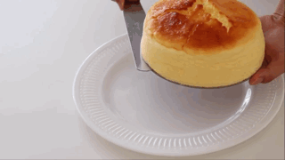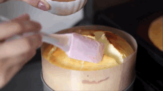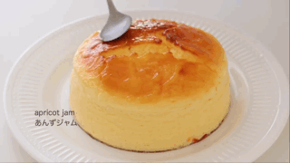 ▲时间到后脱模,一个乳酪般质感的酸奶舒芙蕾蛋糕就做好啦!