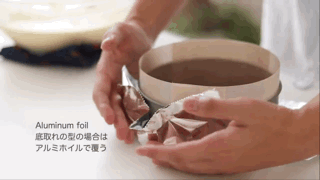 ▲然后用锡纸包住模具,防止等下水浴烘烤进水。