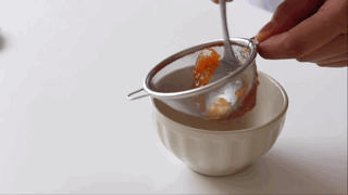 ▲做法是取一勺杏子果酱(或你喜欢的),过筛下细腻一些。