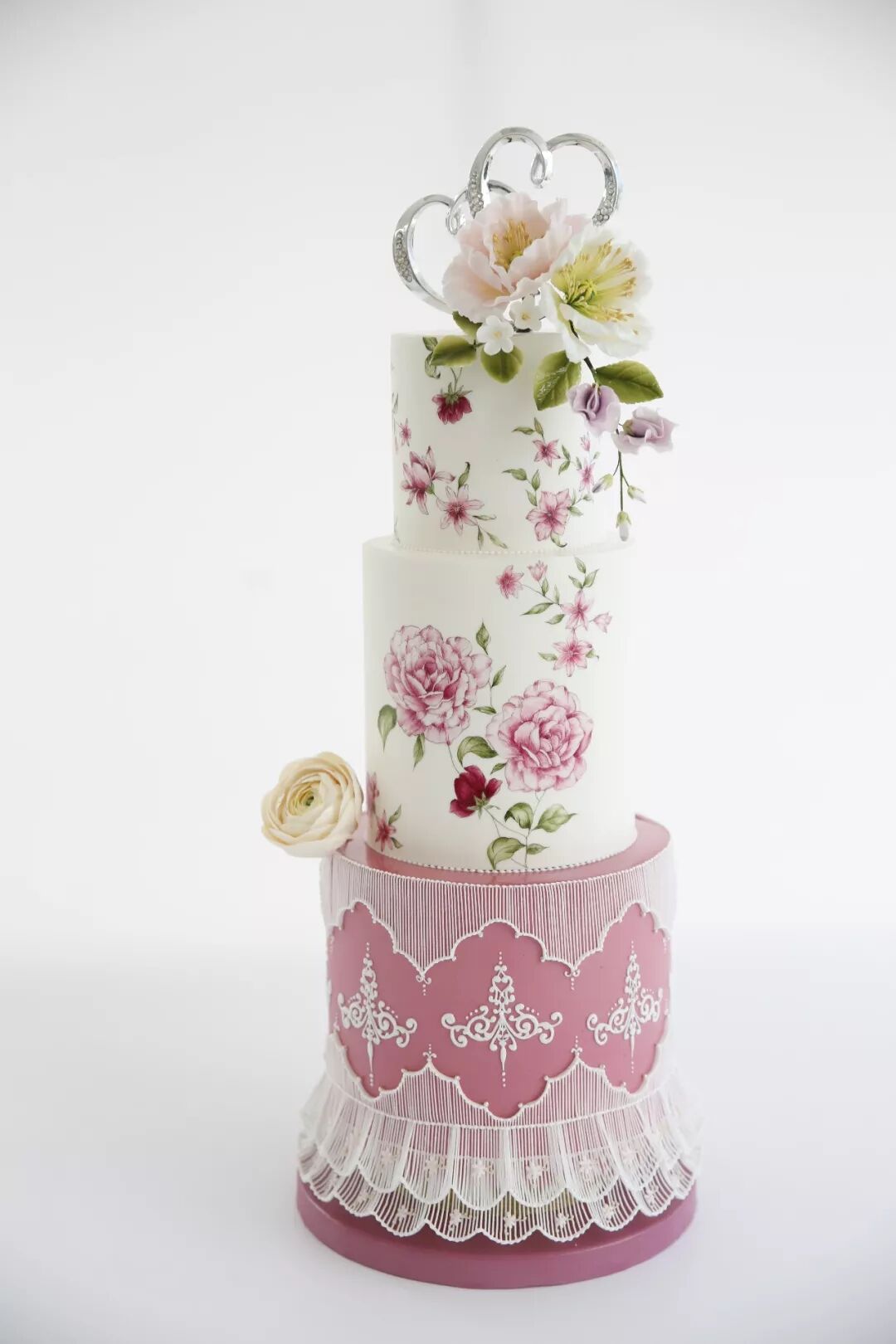 草图设计比实际操作要简单地多,所以试着加上翻糖花边,改变一下花卉的喷洒,或者加入一下别的质地,比如棉絮般的触感。