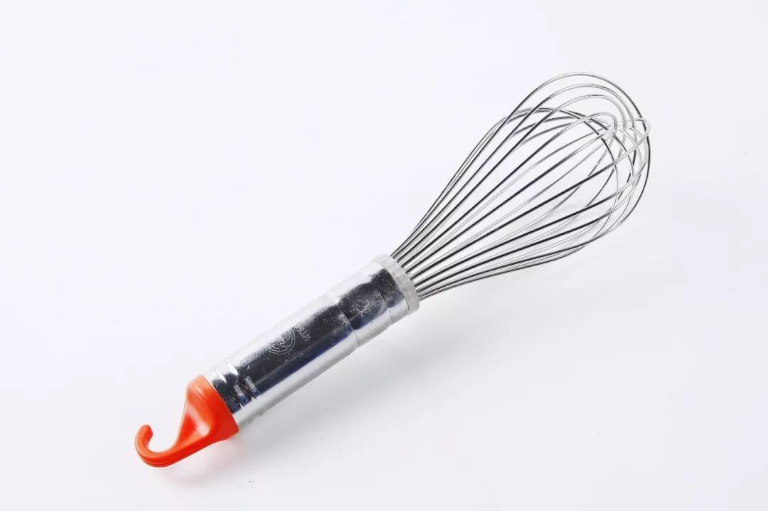 ①.打蛋器适合搅拌少量的材料,如果材料较多,可放入厨师机中,使用网状搅拌器搅拌。②.打蛋器要选择握持感较好,金属丝与手柄的连接处要牢固结实。③.打蛋器的金属丝数量、粗细、硬度的不同,可根据个人需求选用适合的打蛋器。金属丝较多且弹性较好的打蛋器,在搅打时容易裹入更多的空气,适合打发蛋液、淡奶油。金属丝较粗硬、间隔较大的打蛋器,适合打发黄油及搅拌质地较软的面团,例如:曲奇、泡芙面团。![]()