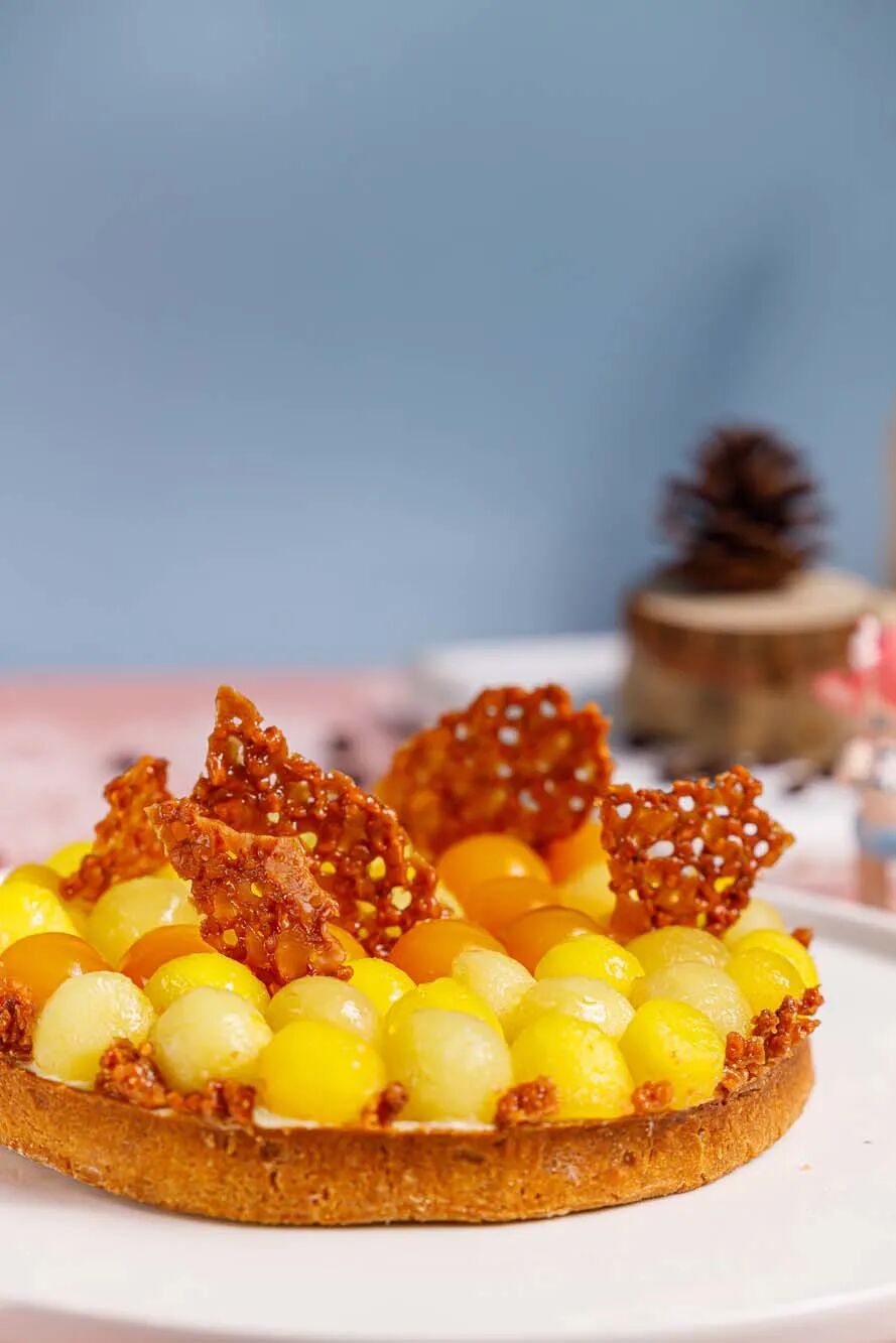 然后再加入面粉,这时面粉无法与水分直接结合,因此很难产生面筋,面团也就没有弹性和黏性。甜酥面团制成的塔皮可以搭配酸性水果,如柠檬和百香果。