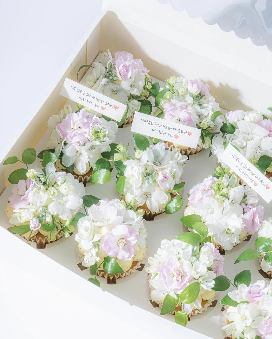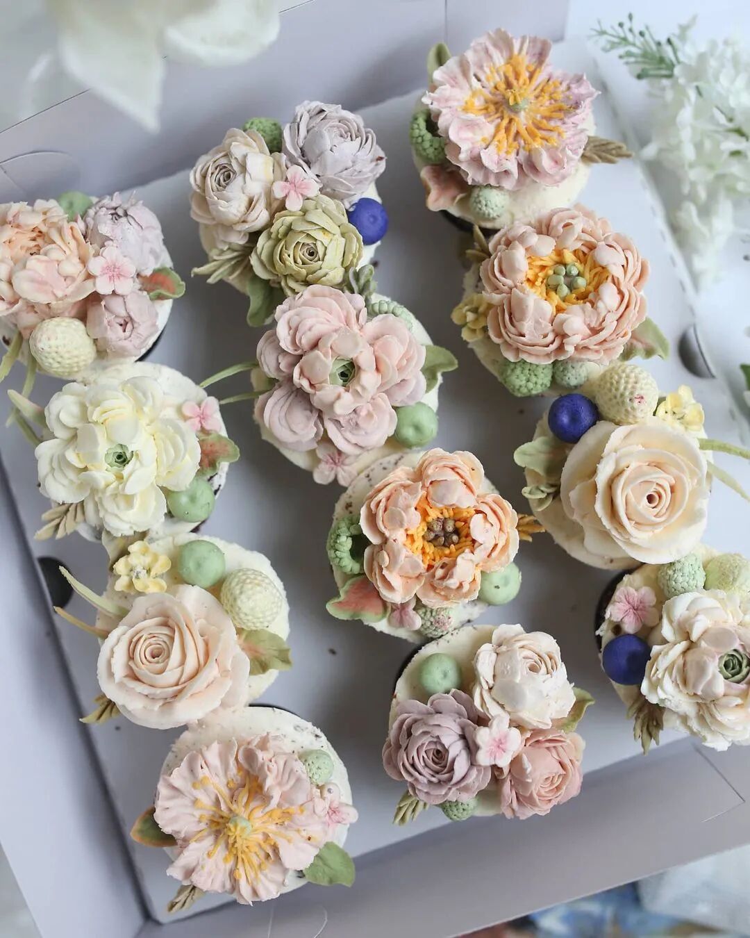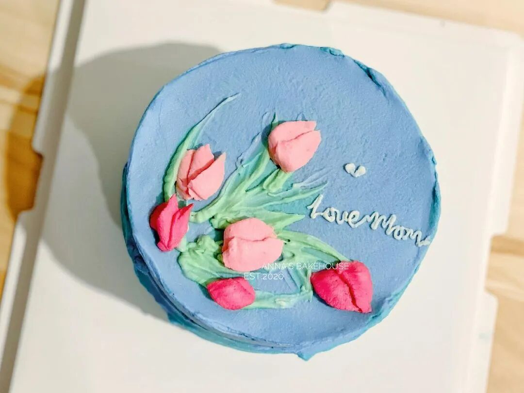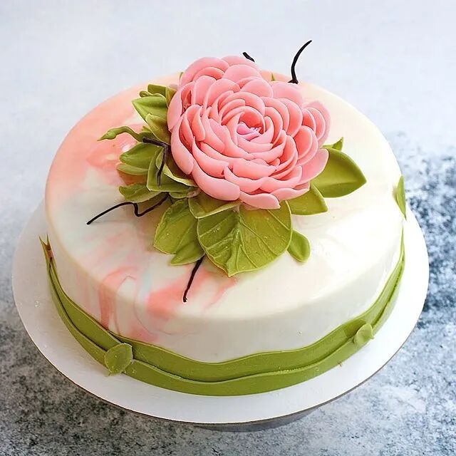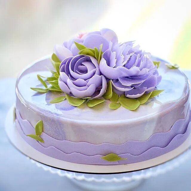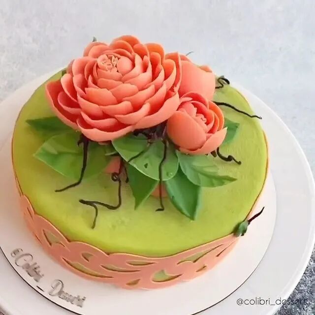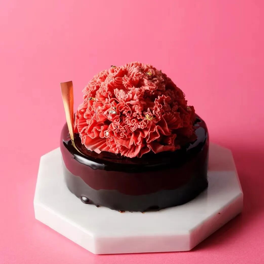 蛋糕上点缀着奶油花、巧克力花或可食用花卉