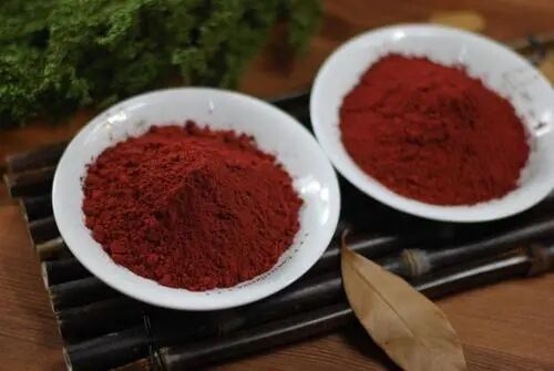 ●红曲米粉:由红曲米发酵加工而成,少量使用,加热后呈肉粉色,用量较多时,成品会呈红色或深红色,对!就是那个霸气的红丝绒色,但会有淡淡的红曲味道。