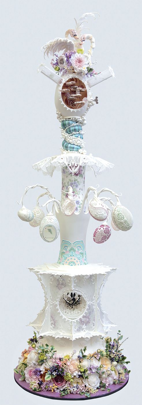 将翻糖覆盖在蛋糕体上,再以各种糖塑的花朵,动物等作装饰,做出来的蛋糕如同装饰品一般精致、华丽。
