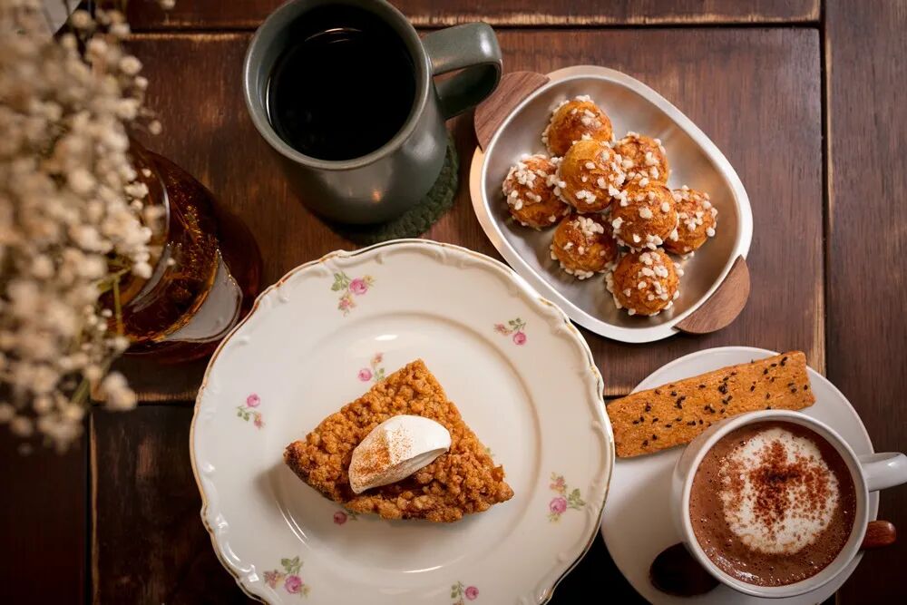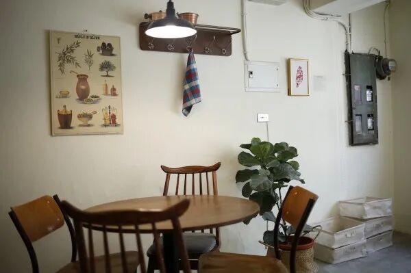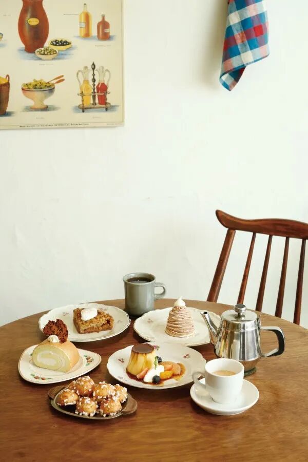 夫妻两人都十分喜欢家常口味,游历各地寻找喜欢的美食,对法国甜点十分眷念,又很认可日本师傅改良后的日式口感,于是顾客会在这家店里,看到法式与日式的奇妙融合。这种融合是不露痕迹的,店里的空气也处处透着温暖感,木头橱柜里放着店主喜爱的杯盘,旅行途中带回来的小小纪念品。北欧配色的编织桌椅垫、毛线杯垫可爱俏皮,摆放甜点的盘子也是在旅行中搜罗的碎花瓷盘。店里的每一处老物件都散发着温度,客人能够感受到被像家人一样对待。蒙布朗、苹果塔都是法式经典产品,偏向日式的鲜奶油蛋糕、蛋糕卷以及布丁味道独特,货架一眼看去,平平无奇,细细观察却能看出店主的用心。比如,看似普通的苹果塔,因为国内买不到香气与甜度较高的带皮杏仁粉,他们会特意将杏仁烤过再磨成粉,自制成内陷原料。为了将鲜奶油布丁烤出绵滑扎实的口感,他们也经历无数次失败才拿捏到稳定的方法。店里几乎固定使用法国动物性鲜奶油、日本面粉,无花果、草莓、哈密瓜这些季节性水果,在鲜奶油蛋糕中不停更换,从未缺席。店主为了寻找品质稳定的当季水果也费了很多心力。他们会仔细了解水果的特性和品种,再到市场挑选,所以店里的水果都十分新鲜。