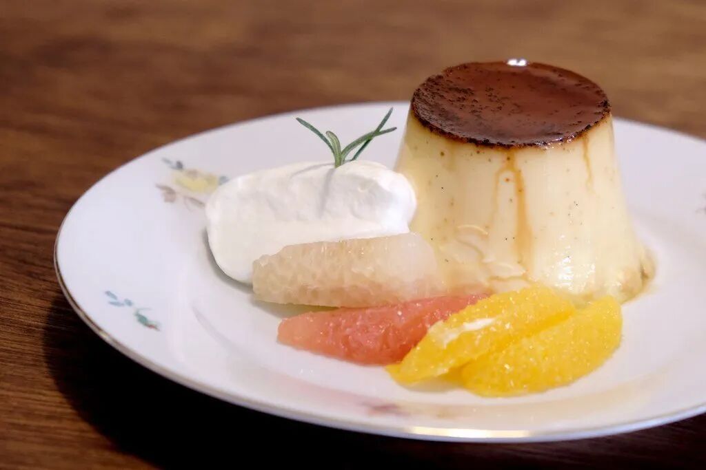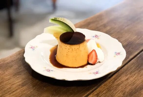 效法传统日式甜点店,将布丁搭配水果与鲜奶油,变为一道独特的盘式甜点。