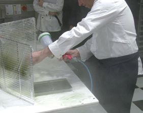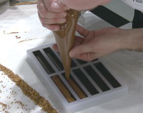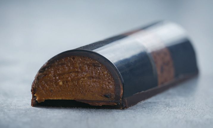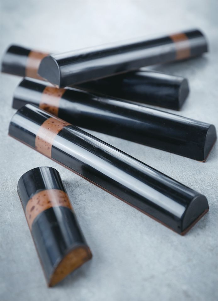网红这个词在这两年高频出现,在网络时代,网红意味着知名度、流量,同时包含着许多商机。网红甜点、网红甜品店……任何东西只要带着“网红”这两个字,必有一帮人趋之若鹜。随着甜点的不断创新,无论是造型还是口感都十分诱人,有颜值、有口味、有趣味的产品更容易得到甜品爱好者的喜欢,创新已经成为烘焙作品的衡量标准。烘焙甜品店若是能做成网红甚至区域性网红,即便是打造出来的网红爆品,带来的商业价值也难以想象!网红店不可缺少的便是网红甜品,它们要么有很高的颜值,仅仅靠脸便能刷出一片市场!要么与众不同,百里挑一依靠独特噱头快速上位!不管是凭借什么c位出道,它们的身影总是活跃于各种社交平台,微博,朋友圈,各大电商平台。再好的产品不经宣传依然难以被众人所知,再好的广告宣传用到一般产品上也只是事倍功半!今天跟大家分享的便是如何打造一款创新有特色的产品,从产品研发、物料、定位、定价都有详细解说喔,一起来看下吧~水 300 克、幼砂糖 600 克、烤熟的扁桃仁 400 克、风干核桃(生) 266 克、牛奶巧克力 500 克、蜂蜜适量 制作过程:4. 倒入铺有硅胶垫的烤盘中,铺平,放在常温下静置冷却。5. 将“步骤 4”放入粉碎机中,粉碎成泥状,倒入搅拌盆中。核桃榛子酱 500 克、牛奶巧克力 120 克、可可脂(化开) 适量、黑色色素 适量1. 将牛奶巧克力隔水化开,加入核桃榛子酱混合均匀,根据需求添加适量化开的可可脂和黑色色素调节整体的稠稀度和色泽,调温至 25℃ ~28℃,备用。64% 的黑巧克力 适量、可可脂 适量、黑色色素 适量 制作过程:1. 在模板的一端约 1/5 的地方粘上一道窄边的胶带。2. 将可可脂和 64% 的黑巧克力按 1:1 的比例混合,隔水化开,加入黑色色素调节下颜色,装入喷枪中,喷在模板上(可以先喷一次,待干后,再喷入一次),放在室温下晾干。3. 另取适量的 64% 的黑巧克力化开,调温至28℃,倒入模具中灌一层薄薄的壳。5. 将调好温的核桃榛子壳灌入模具中,成浅浅的一层,待干后,再重复一次“步骤 3”。6. 将核桃榛子酱装入裱花袋中,挤入模具中至接近模具的高度,放入冰箱中冷冻定型。 -->