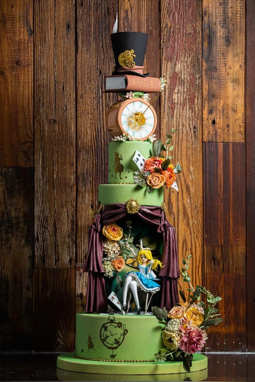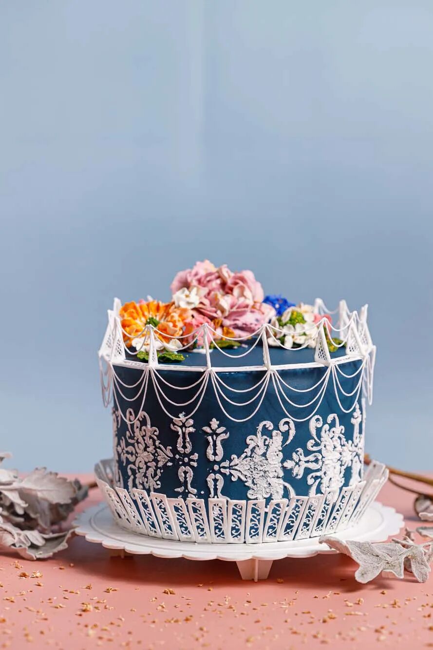将翻糖覆盖在蛋糕体上,再以各种糖塑的花朵,动物等作装饰,做出来的蛋糕如同装饰品一般精致、华丽,展现了蛋糕的极致生命力。