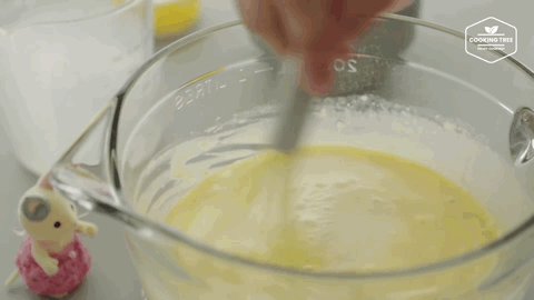 鸡蛋、香草精、糖、盐倒入盆中搅打均匀;然后过筛入低筋面粉,100g牛奶搅拌至面糊状态;