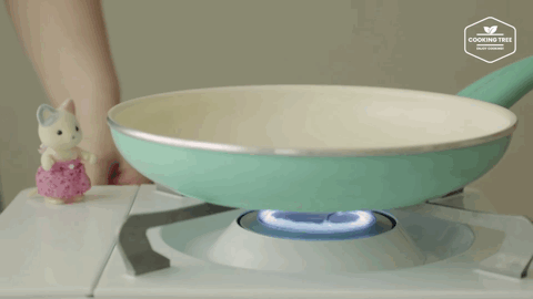 开小火,煎锅内倒入无味植物油,用厨房纸或其他工具抹均匀。