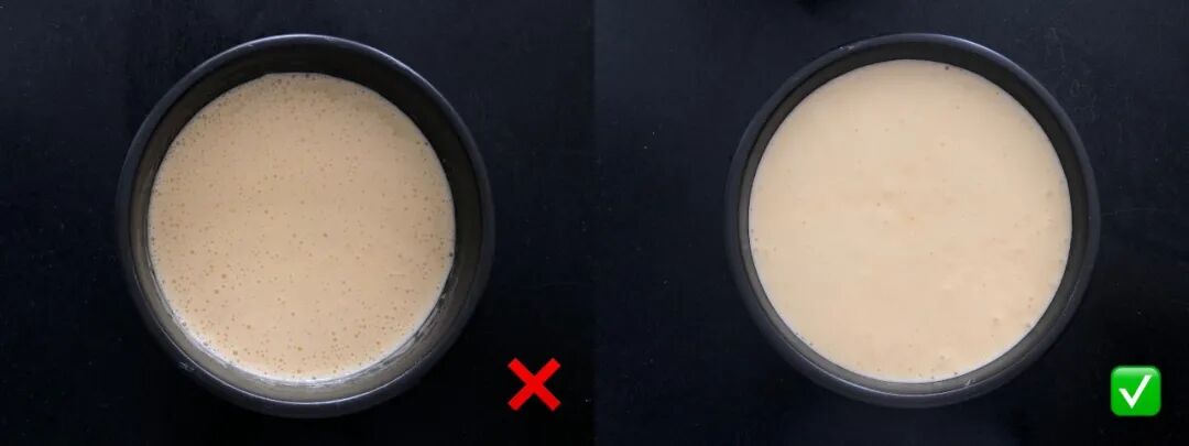 2. 面粉加入蛋液时不可用力搅,更不可搅拌过久,最后油和奶加入时轻轻拌匀即可