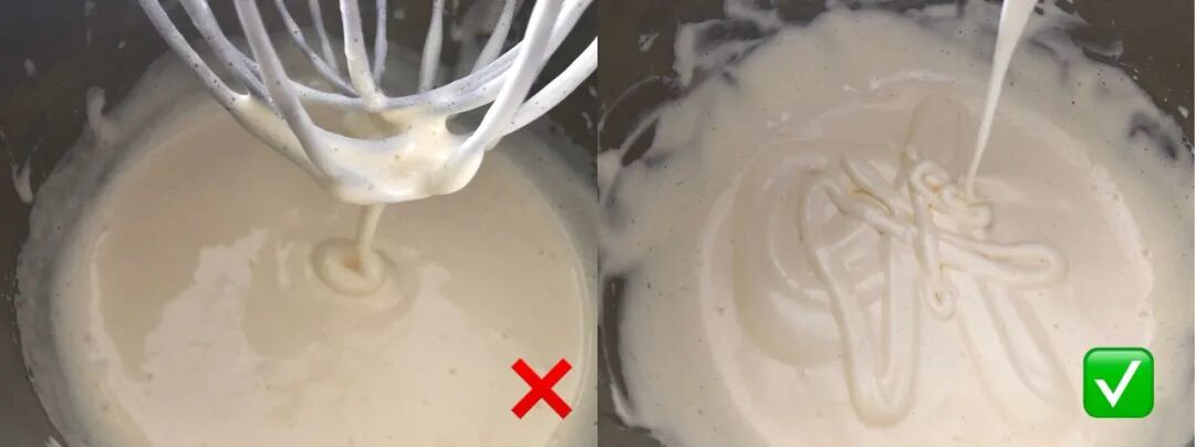 1. 标准蛋打发之后,用手指勾起,面糊会呈现出稀软的尖峰,开始时向下流一两滴,然后停留在手指上不再向下滴