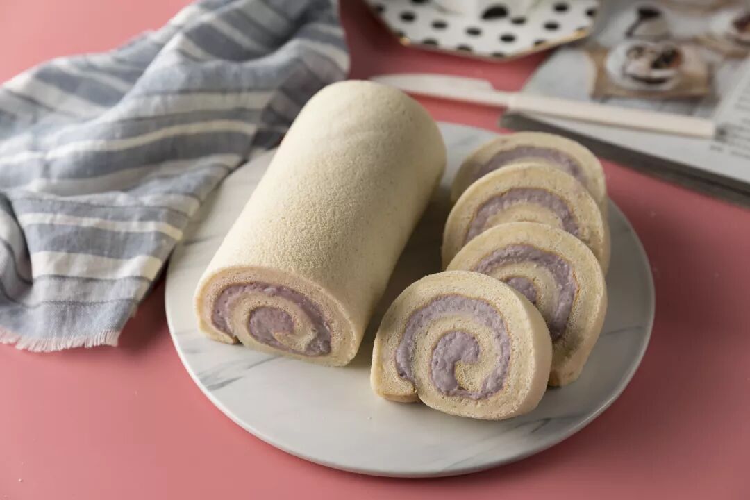 细滑的奶油下面,铺满了品种多样的蛋糕卷