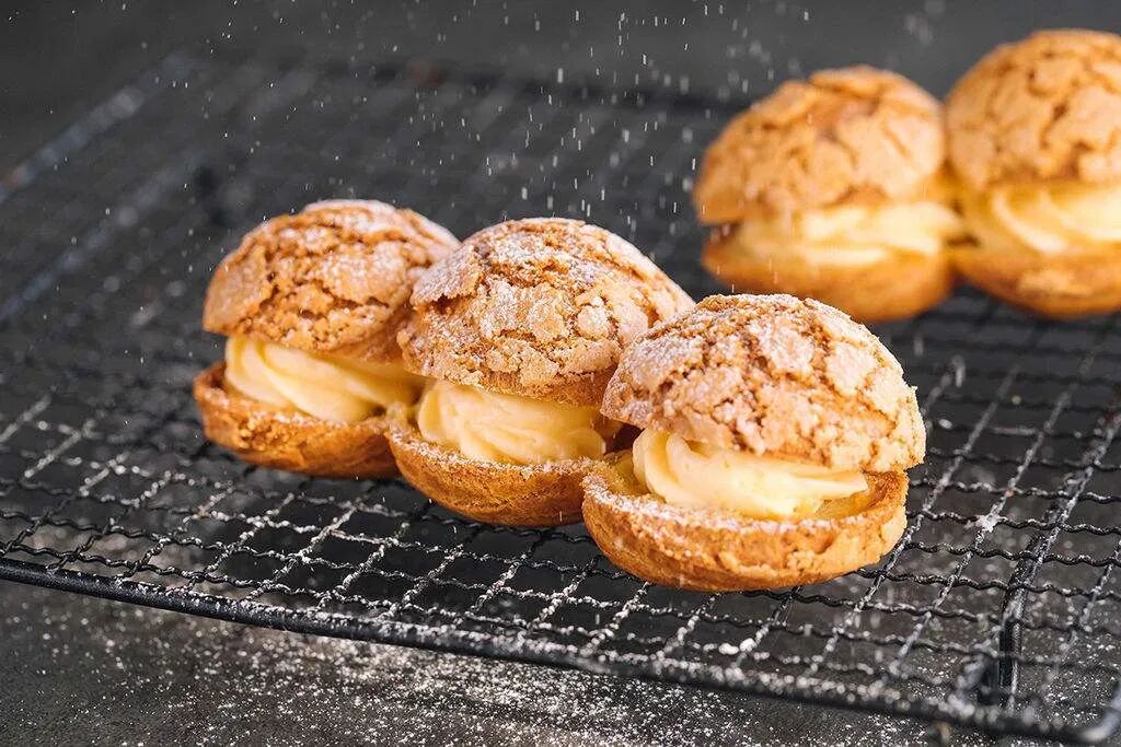 ➌烘焙:放入220℃烤炉中,待泡芙膨胀后,炉温下降至200℃,制品外部呈金黄色时即表示成熟。