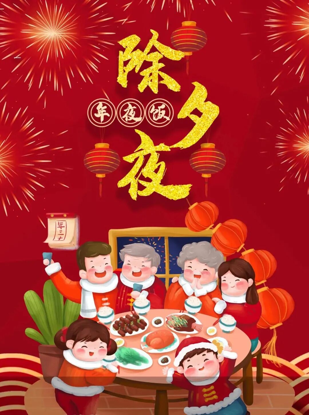 除夕,又叫“岁除”,意为:“除旧岁换新岁。” 相传,古代有一只叫“夕”的凶兽,每逢今日,它就出现在附近的村落大肆破坏屠杀,居民不堪其扰。