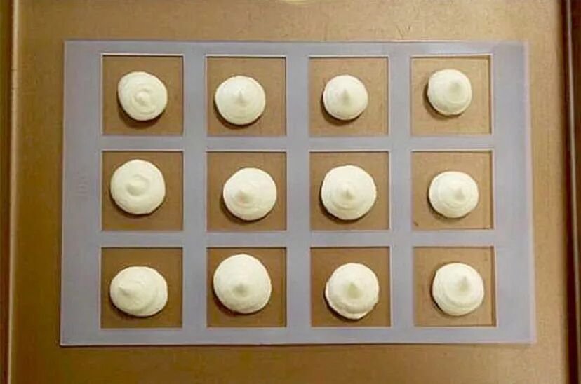 8、把硅胶垫放烤盘里,硅胶垫上放上瓦片酥模具(底下垫硅胶垫操作时瓦片酥模具不会晃动);