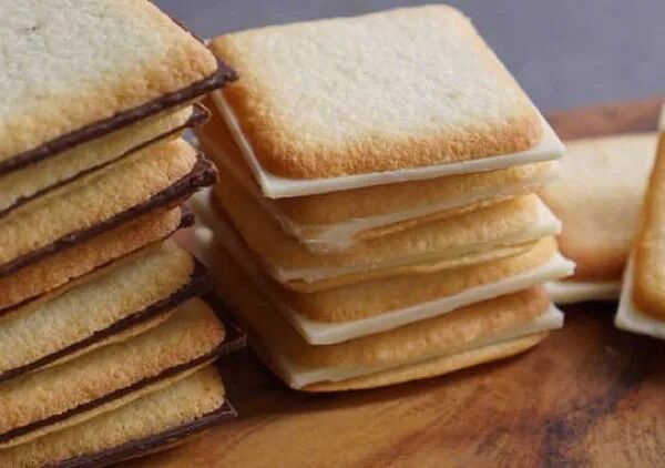 两片酥脆的薄饼干与香浓的巧克力相遇相夹