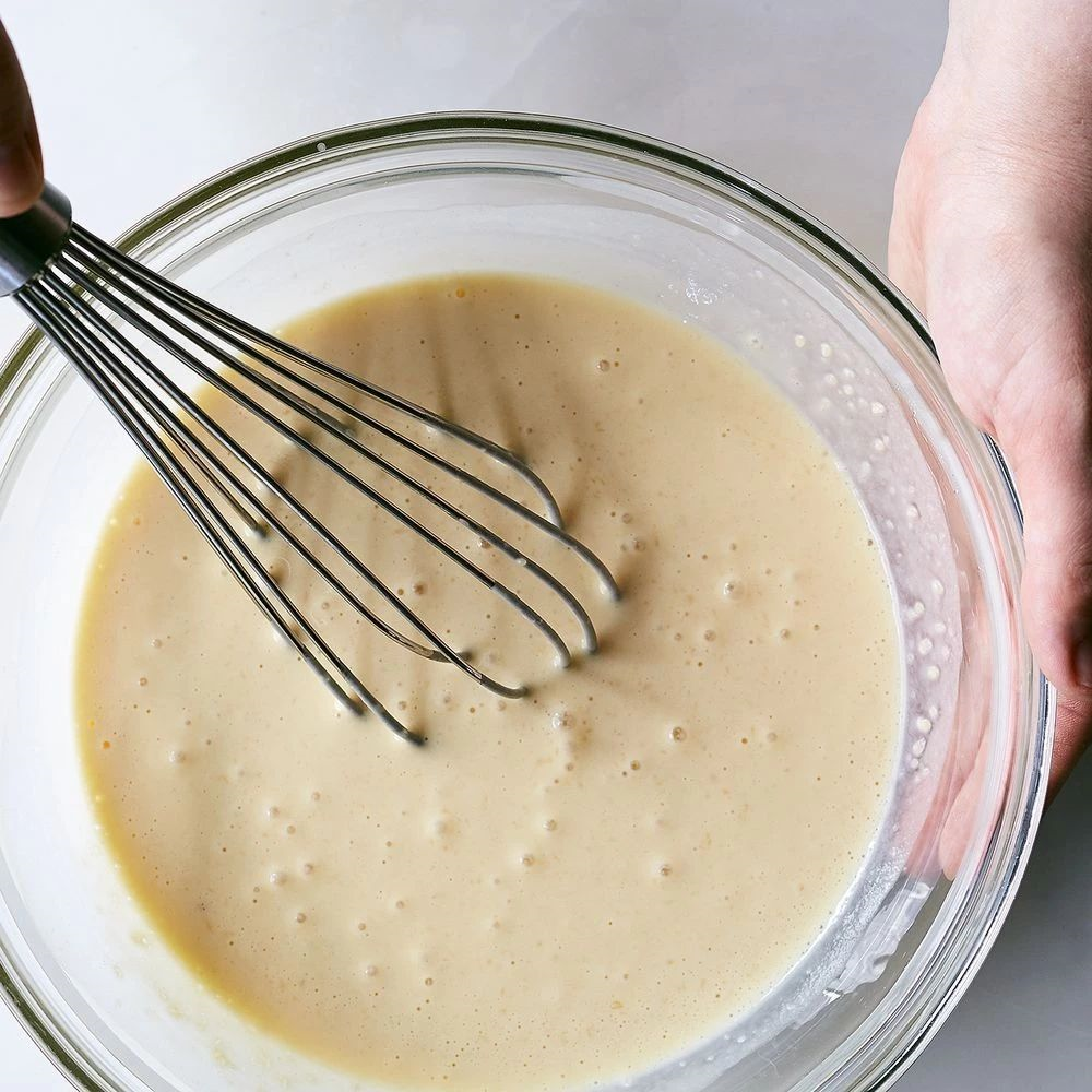 在倒入面糊前,先在蛋糕框里刷油和撒粉。这是继预热烤炉后的第一个关键细节,千万不要漏了这一步,这个步骤能令蛋糕更容易地被脱模。