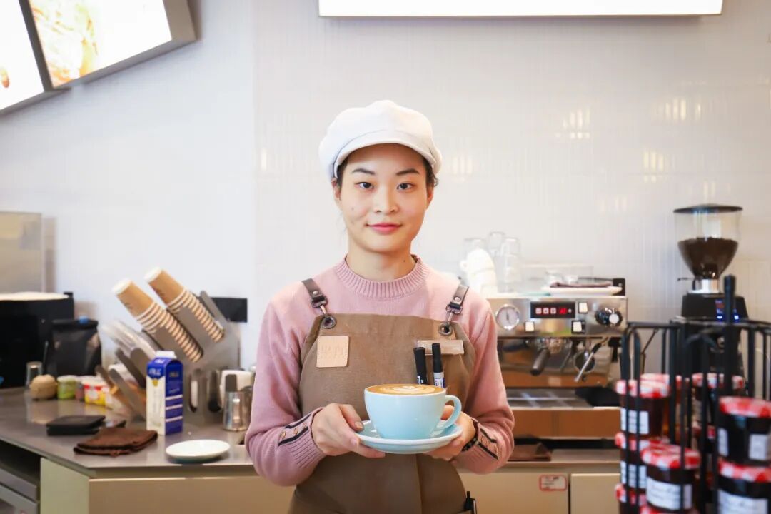 冯焕霞,毕业于新东方咖啡饮品专业,目前就职于龙湖里·半丘,入职半年已升至店长,月薪8000+
