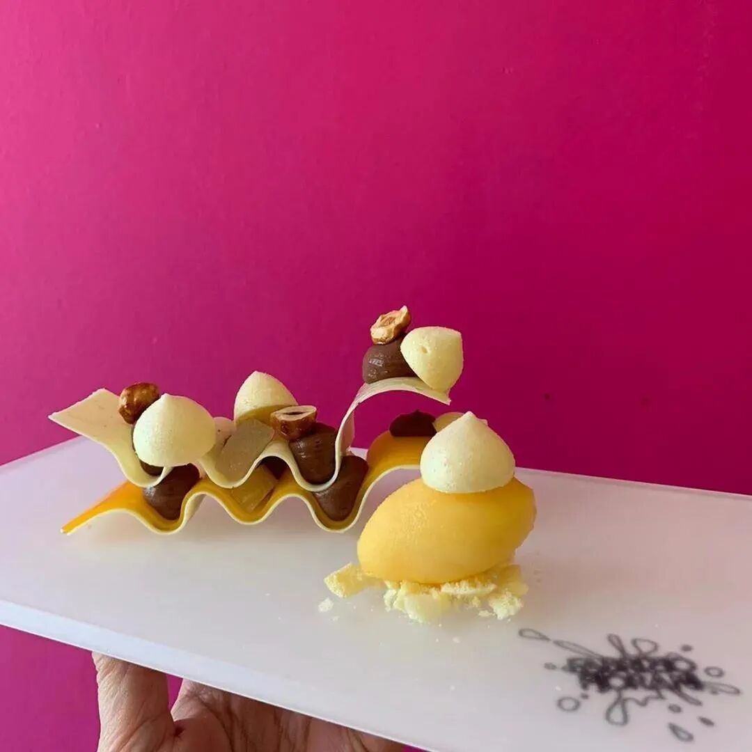 创意、技术、灵感、自然,汇聚在Fabrizio Fiorani精雕细磨的甜点作品之中。不论是甜点造型、层次以及风味,都透着他自己的风格。