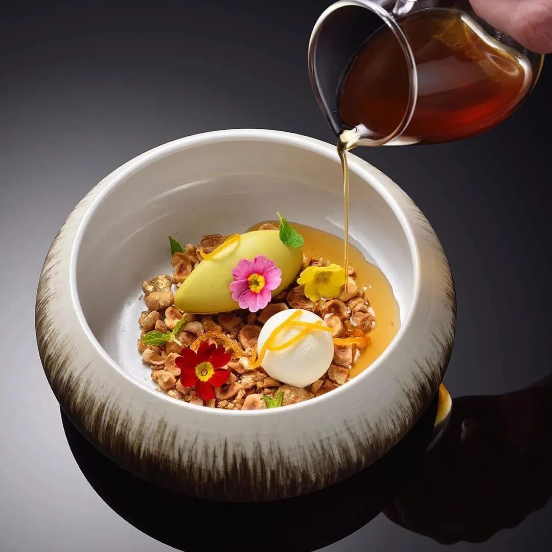 此后,在他的糕点之中大多都包含着冰淇淋的成分,并逐渐将其化身成为了标志性的符号。搭配大颗粒的果仁碎,每一口都是幸福的味道。