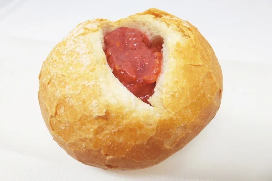 草莓果酱包,售价350日元,是店铺内最受欢迎的产品,严选S级品质的草莓制成果酱。