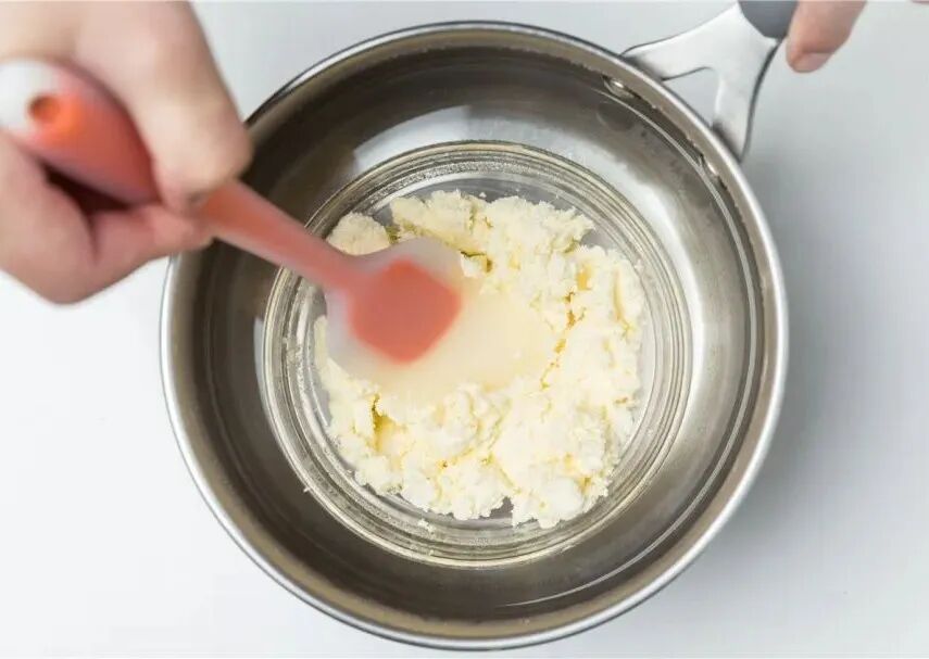 1. 奶油奶酪隔热水软化。