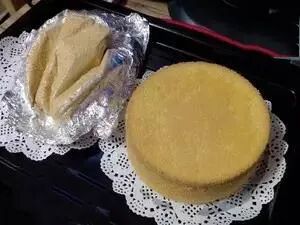 2、有时戚风蛋糕徒手脱模时蛋糕会被压的变形,此时不用担心,成功的蛋糕回弹效果会很好,稍微一抖就能恢复原状的。这也是考验我们戚风蛋糕内部组织是否完美的一个标准。