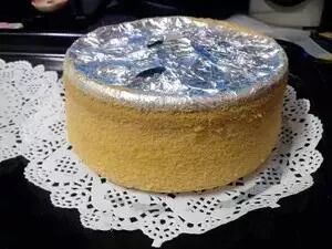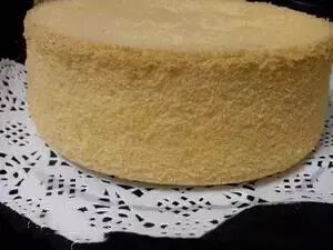 9. 将模具外壳抵出来后戚风的边缘是非常完整的,也没有掉蛋糕渣。