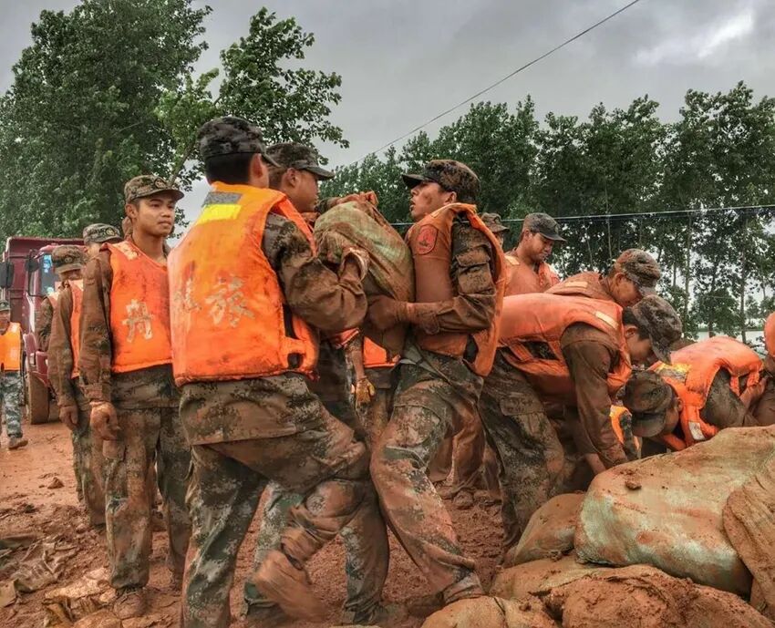 当洪水如猛兽一般来袭时,他们奋不顾身跳进洪水中,把自己的救生衣让给灾民,他们不顾洪水猛烈的冲击,将生死置之度外,背沙袋,抗石头,筑长堤,堵决口......