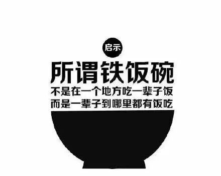 职场与部队不同,在竞争激烈的职场上,想要铁饭碗,首先要明白所谓的铁饭碗不是在一个地方吃一辈子的饭,而是一辈子到哪里都有饭吃,你的技能=你一辈子的铁饭碗。
