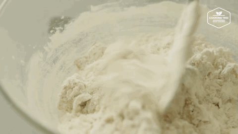 过筛入高筋/中筋/苏打粉,再加入1g盐翻拌/切拌均匀。一开始面团的颜色为白色,翻拌均匀后则呈现黄棕色,放一边备用。
