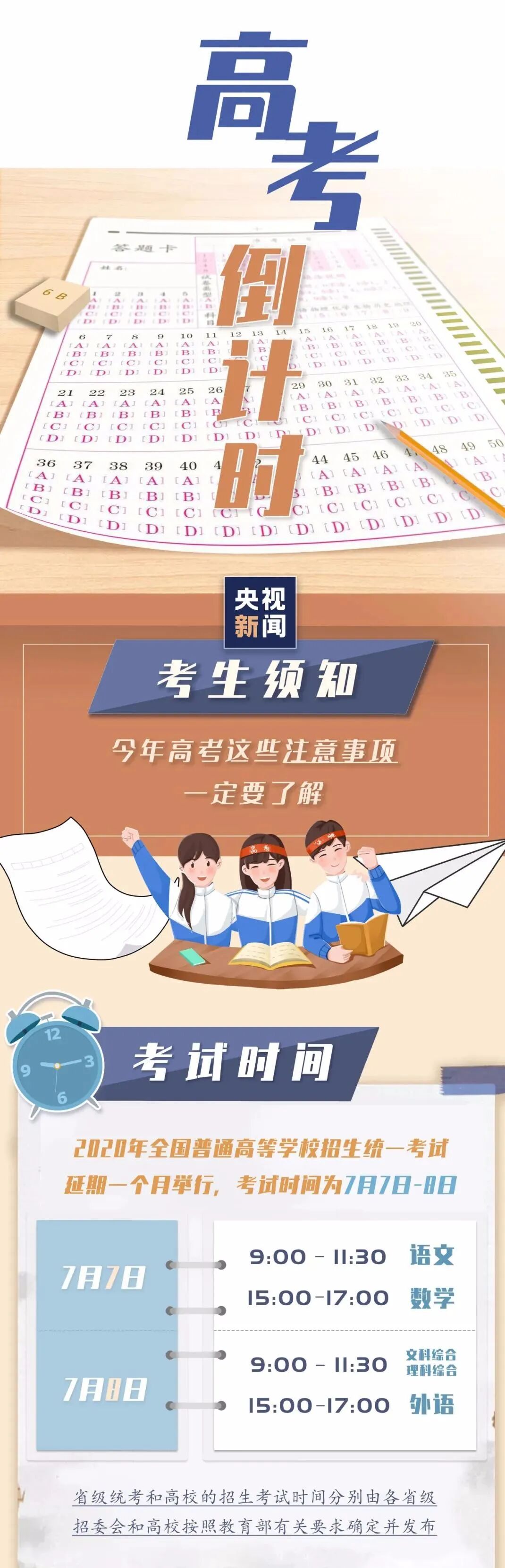 这届学生特别不容易,经历了网课+延迟高考+防疫情况,也算一路乘风破浪披荆斩棘,上演了一出魔幻现实主义的大戏。以后别人问你多大,只要告诉他是七月参加高考,他就能猜个八九不离十了!如今距离高考还有不到一天,恭喜啊,再坚持一下,你们就要熬到头啦!![]()