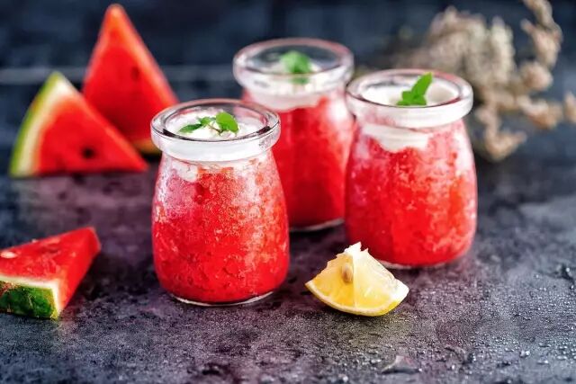 西瓜的吃法千千万,如果只是将西瓜咔嚓两刀切成块吃,或者只是拿着勺子勺着吃,一来二去,总觉得没有意思!但是,如果将清甜可口的西瓜包裹在冰冰凉凉的冰沙中,是不是想想就觉得自降温度好几度呢?将做好的冰沙一口口地送进嘴里,感觉暑气就瞬间被赶走了!