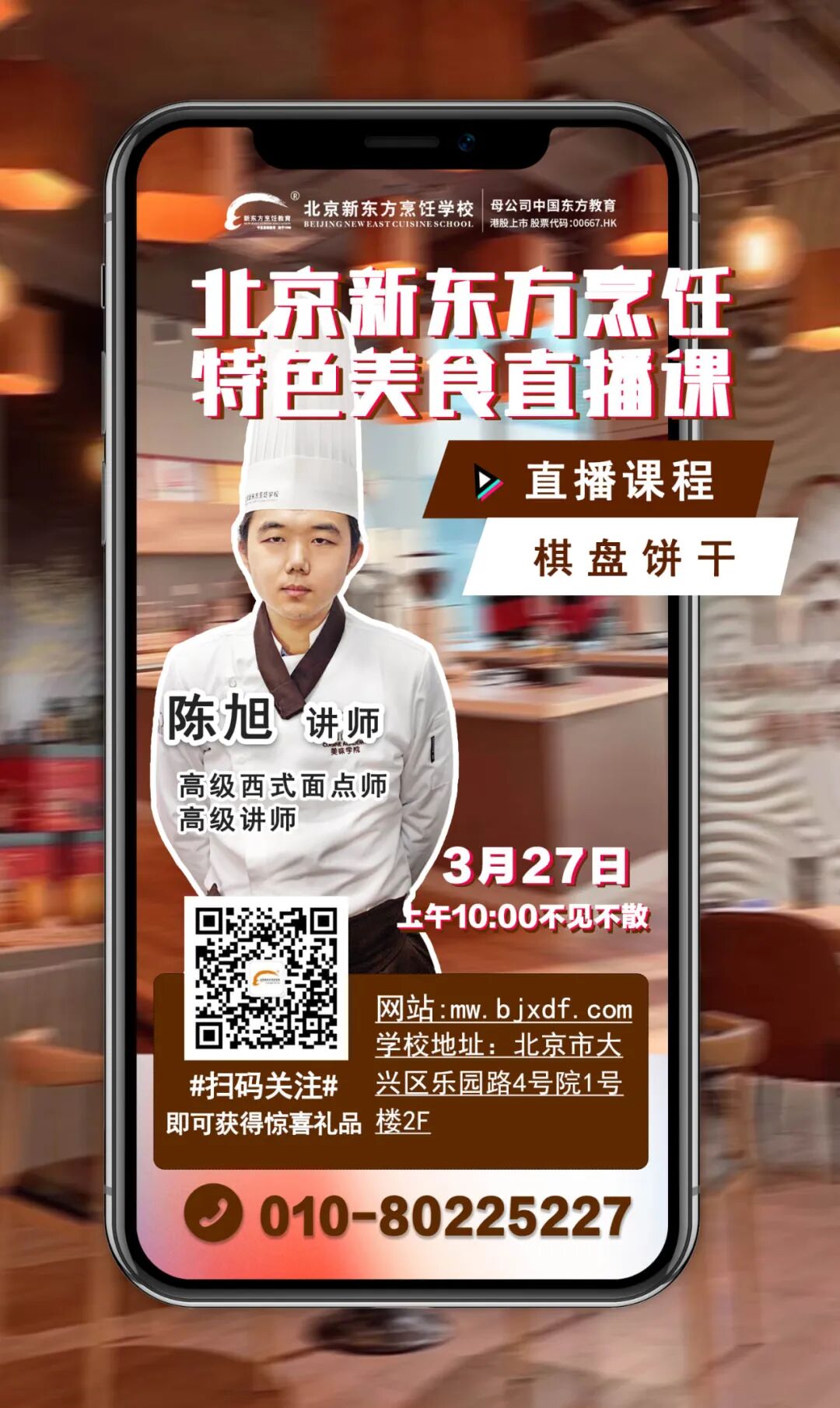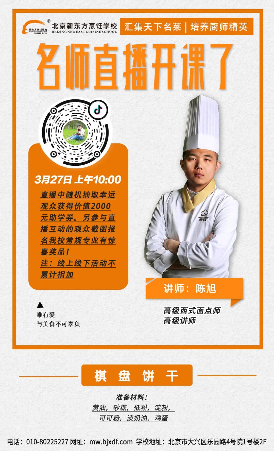 明天上午10:00,高级讲师、高级西式面点师陈旭老师将在我们北京新东方烹饪大兴校区的直播间中,现场制作这一款在视觉与味道上,都极具冲击力的美食— —棋盘饼干!欢迎大家到时前来观看。